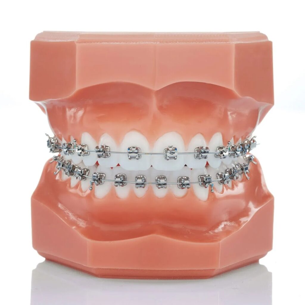 Metal braketler en ekonomik ve en temel ortodontik tedavi şeklini oluşturur. Kapaklı veya kapaksız tipleri vardır. Hekim genellikle en rahat çalıştığı tipi tercih eder. Kapaklı olanların maliyeti daha yüksektir.
